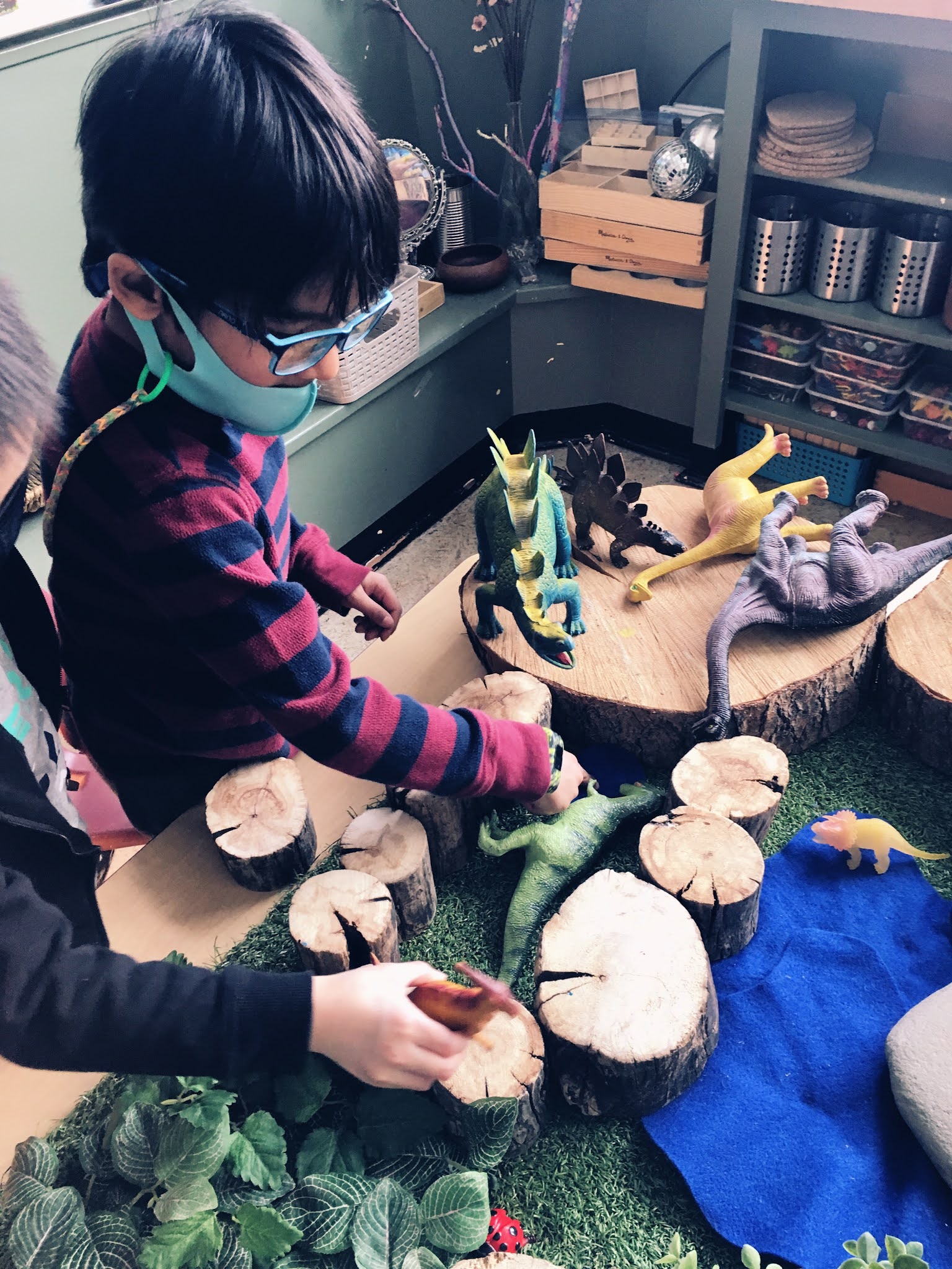 We're learning to conduct simple research by making observations and asking thoughtful questions. These kindergarteners are getting very good at sharing what they SEE, THINK and WONDER when looking through dinosaur books, pictures, models and artifacts.