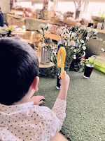 We conducted our first official science experiment! Children made a hypothesis about what would happen to some lovely white flowers if we added food colouring to their water. Kiddos came up with some very unique guesses that ranged from colour changing flowers to explosions!